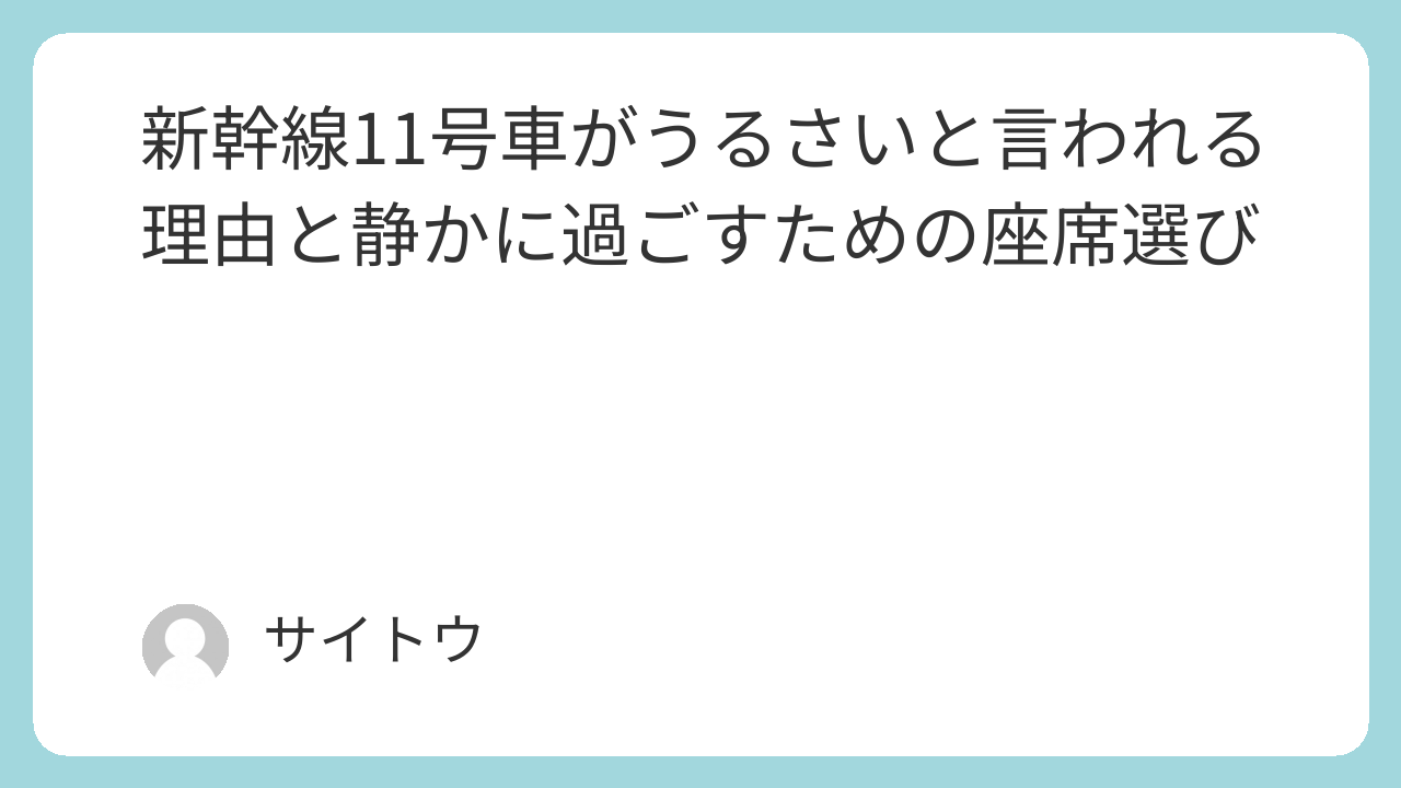 新幹線11号車がうるさいと検索する人の多くは、予約後に不安になった人か、次回はできるだけ静かな席を選びたい人です。