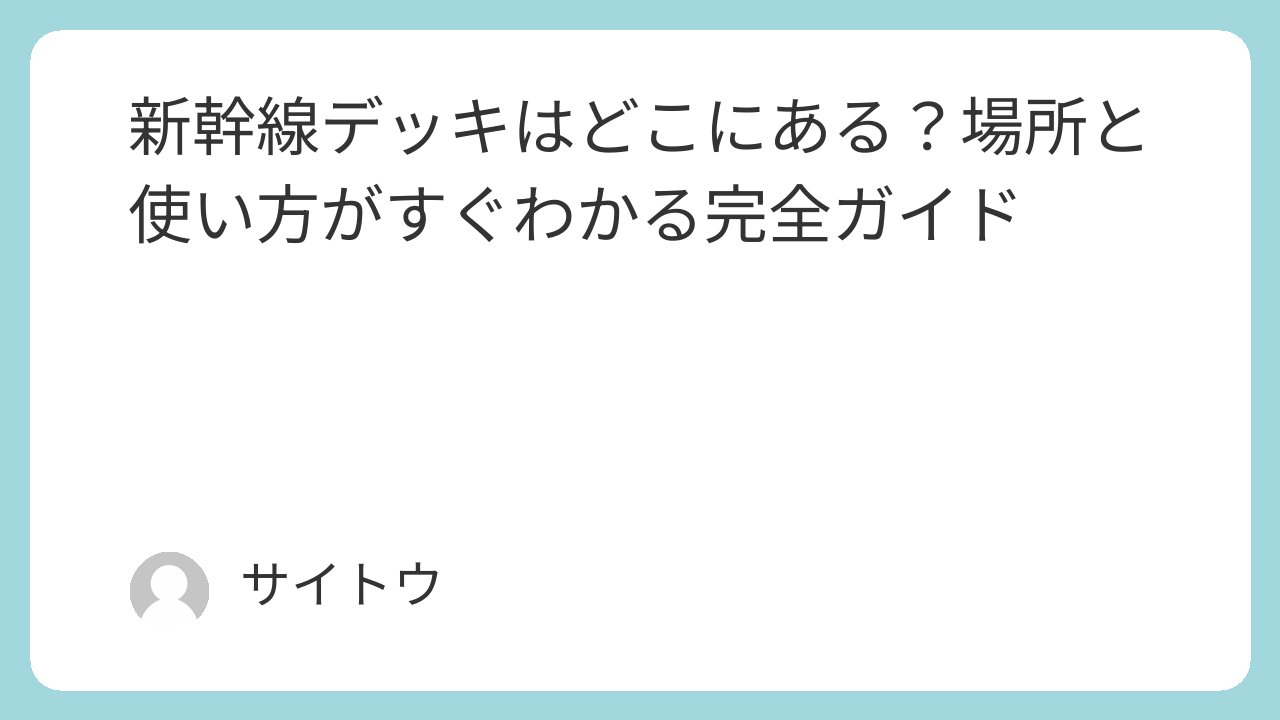 初めて新幹線に乗る人でも、読み終わるころには迷わずデッキを見つけられる状態を目指します。