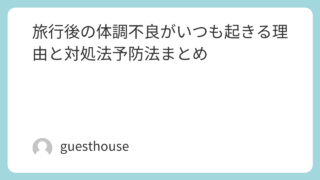 国内旅行から戻ったあとに体調がすぐれないと感じる人へ。長時間移動や生活リズムの乱れ、気候差などの原因とよくある症状の見極め方を丁寧に解説します。自宅でできる応急対処や休養のポイント、病院を受診すべきタイミング、旅行後の不調を予防する方法まで網羅。次の旅も元気に楽しむための実践的な健康管理ガイドです。