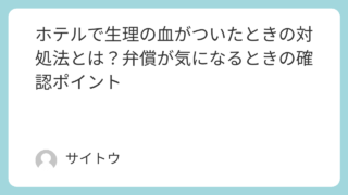ホテルで生理の血がシーツやベッドに付いてしまったときに、まず取るべき行動を整理しました。フロントへ伝えるタイミングと伝え方、弁償やクリーニング代の考え方、自分でしてよい応急処置、連泊中とチェックアウト時の対応、次回の予防策までをまとめて解説します。焦って隠したくなる場面でも、落ち着いて判断しやすいように順番に説明します。