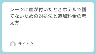 シーツに血が付いたときホテルでどう対応すればいいのかを、フロントへ連絡するタイミング、自分で触ってよい範囲、お湯が向かない理由、追加料金や弁償が気になる場合の考え方、チェックアウト時の伝え方、マットレスまで染みたときの判断、次回の予防策までまとめました。出張でも旅行でも使える、宿泊中にすぐ役立つ実践ガイドです。
