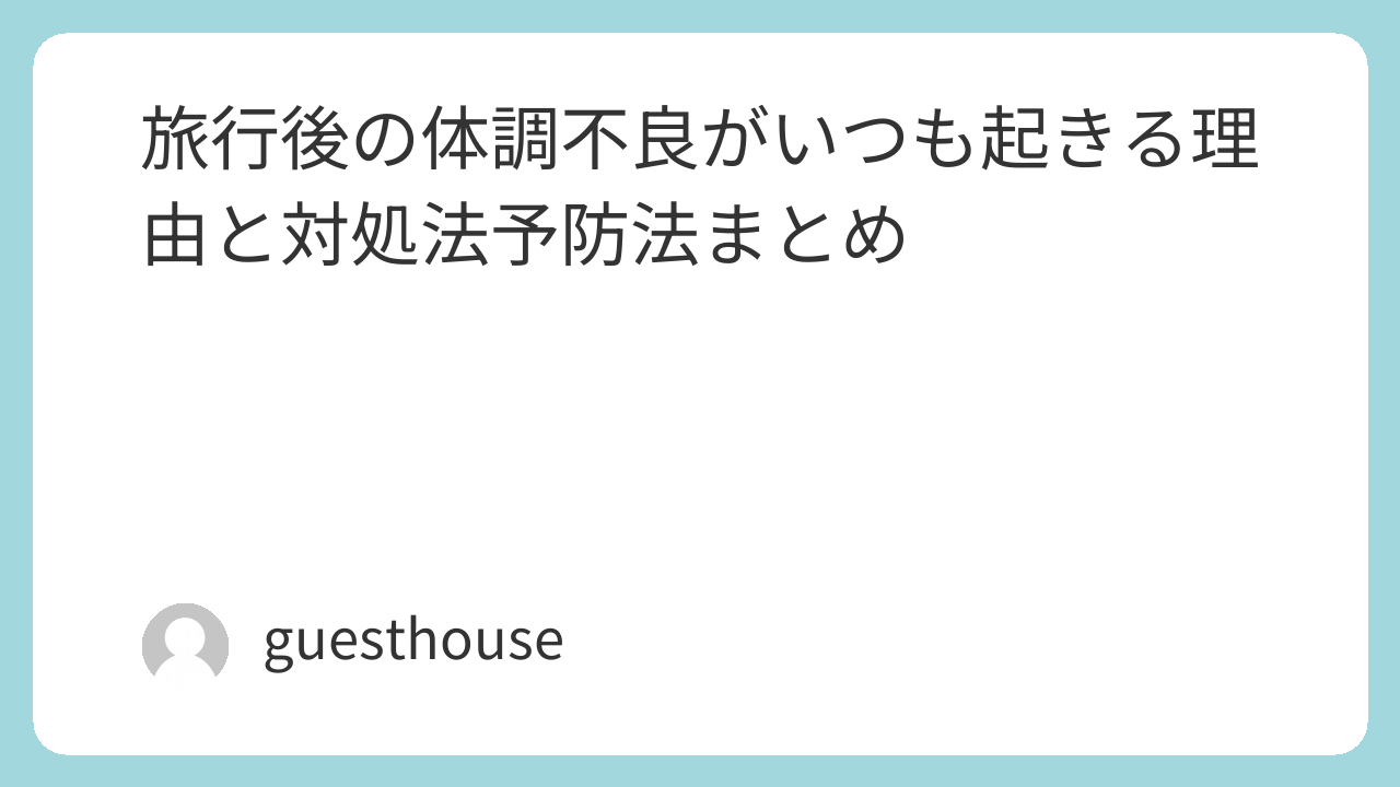 この記事では代表的な症状とその特徴を整理し、日常的にできるセルフケアや回復を促す方法を紹介しました。また、予防策として旅行前の体調管理や移動中の工夫、帰宅後のリカバリー習慣も解説しました。