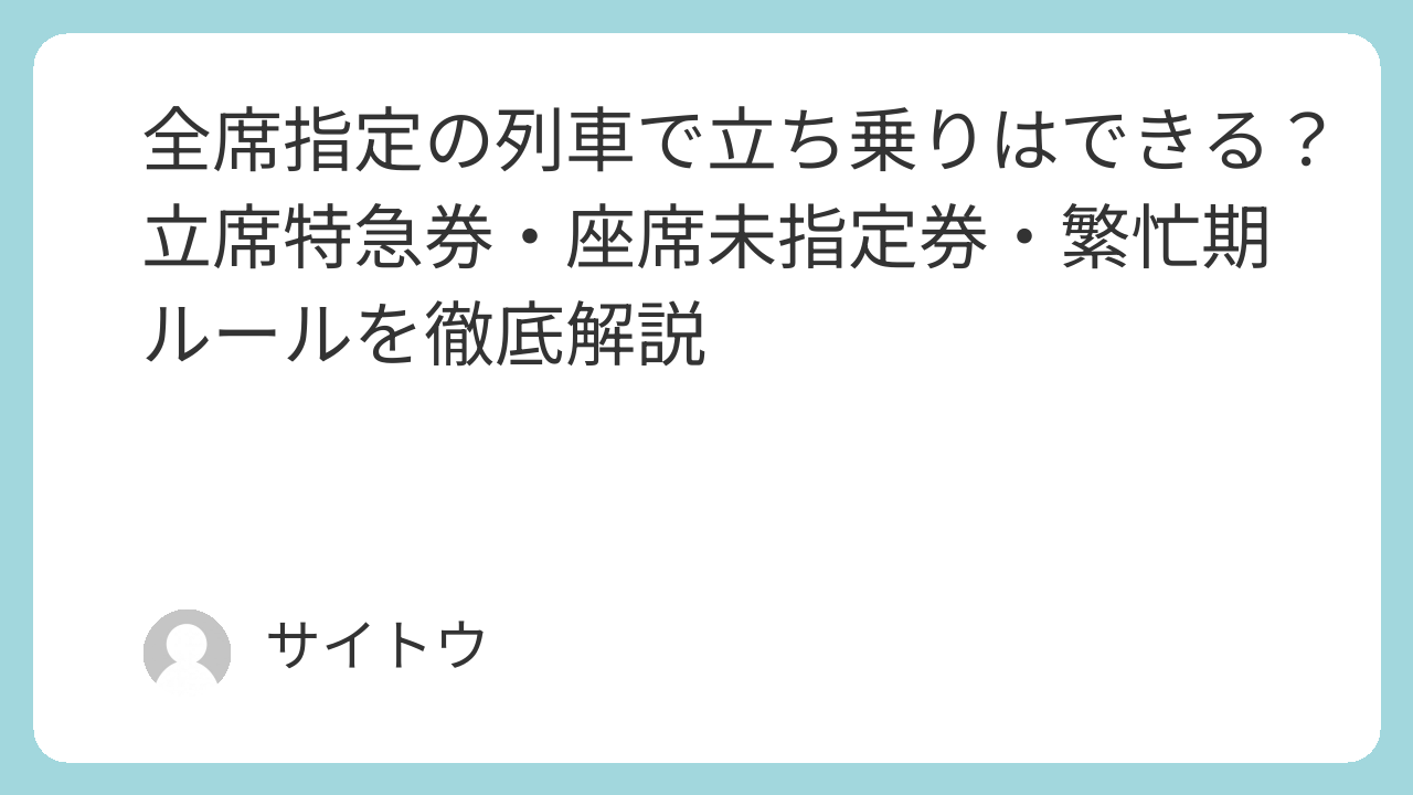 この記事では、立席特急券や座席未指定券、繁忙期の運用までまとめて整理します。