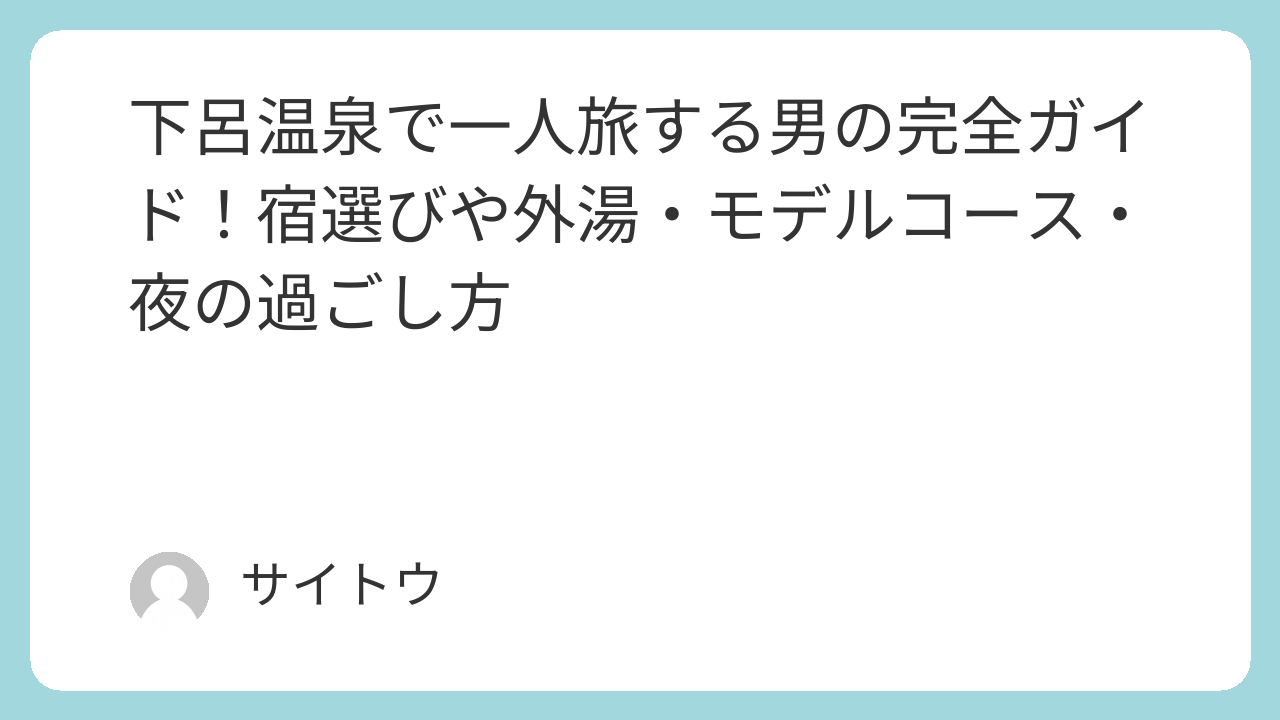 “自分時間に投資する旅”として下呂温泉を使うのが、男一人旅の正解です。