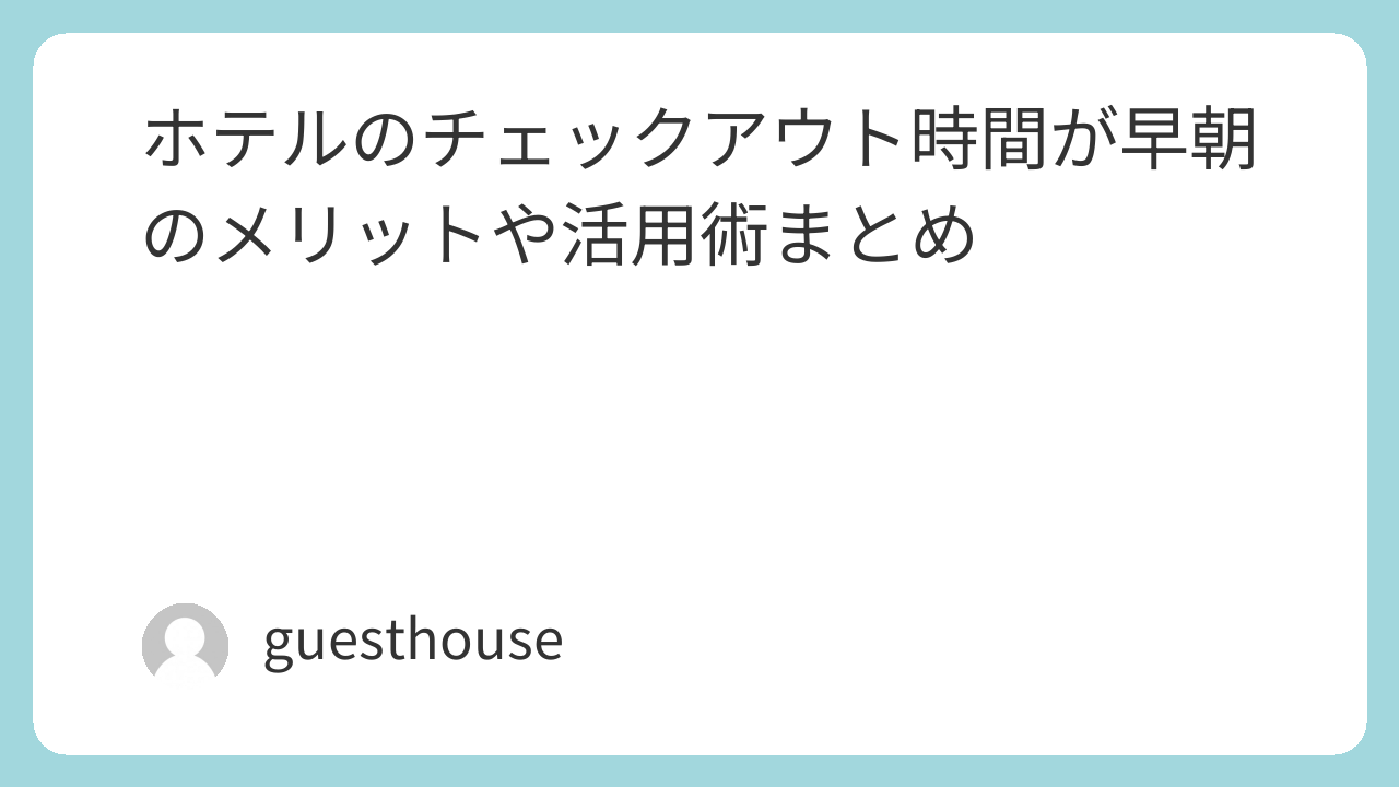 “チェックアウト時間を早朝に設定できるホテル”を賢く選び、時間の余裕と安心感を味方につけて、次の一泊をより上質な出発日に変えていきましょう。