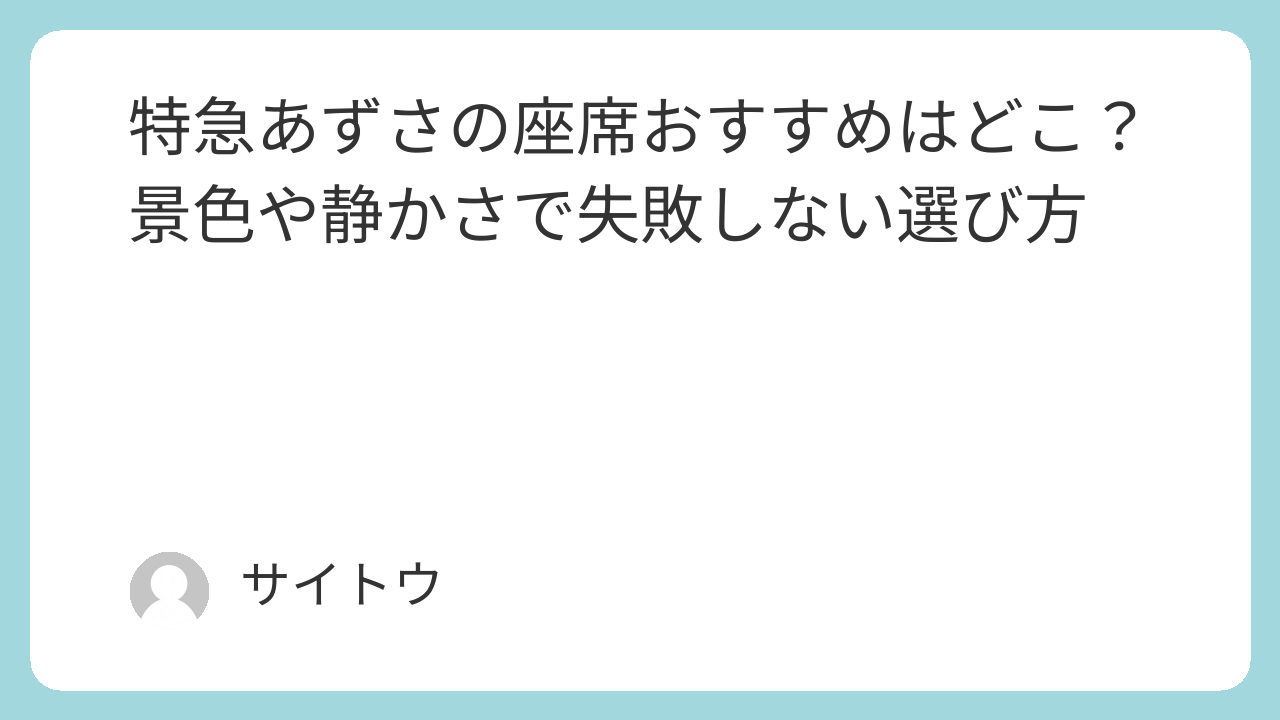 特急あずさの座席選びで大切なのは、万人にとっての正解を探すことではなく、自分の優先順位に合った席を選ぶことです。