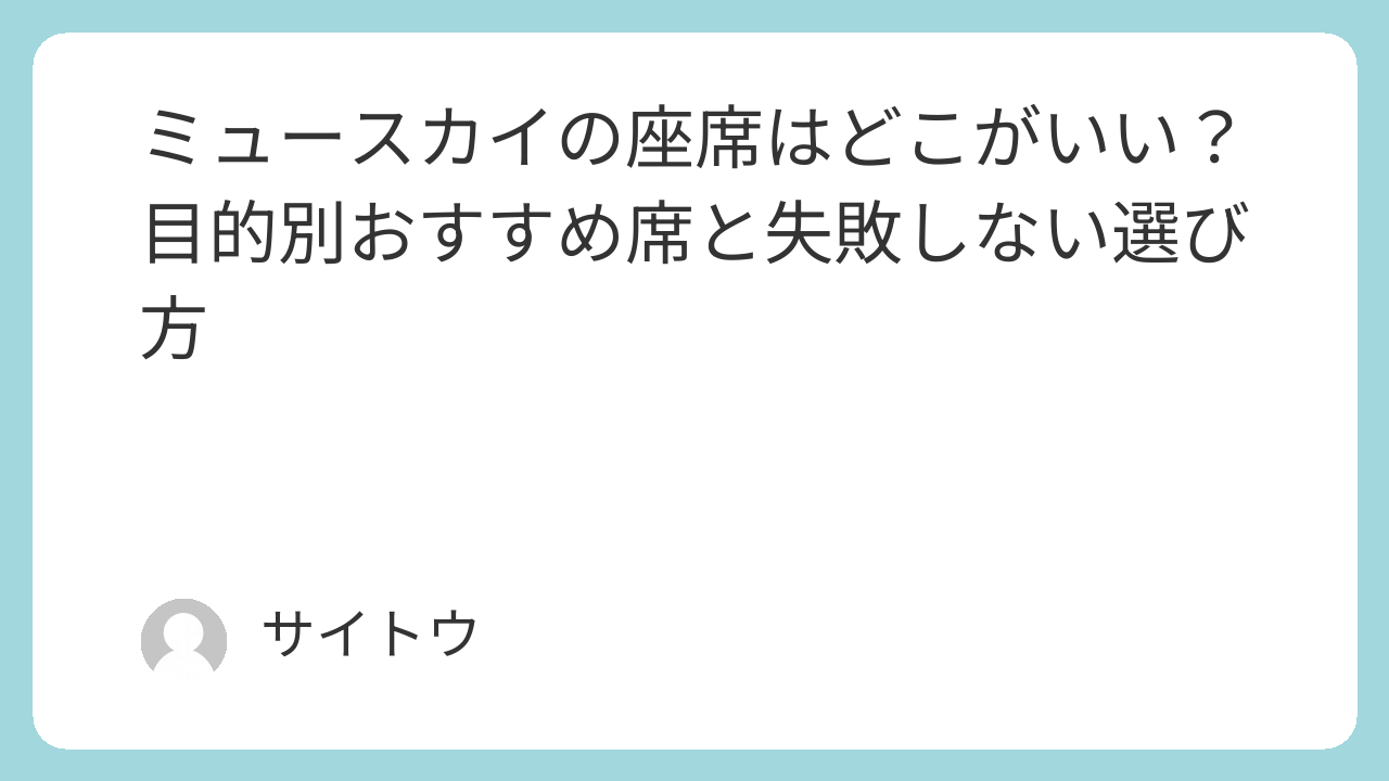 この記事では、ミュースカイの座席選びで失敗しにくい考え方を、目的別にわかりやすく整理していきます。
