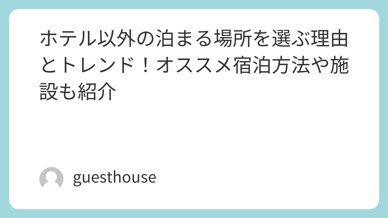 この記事で紹介した選び方やポイントを参考に、次の旅行では「ホテル以外の宿泊施設」を視野に入れて、新しい旅の形を探してみてはいかがでしょうか。