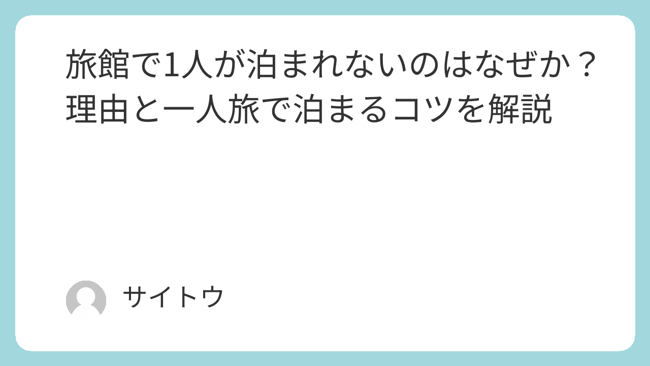 | 商品設計の問題 | 一人向けの価格や導線を常設していない宿もある | 公式サイトや電話確認で見つかることもある |