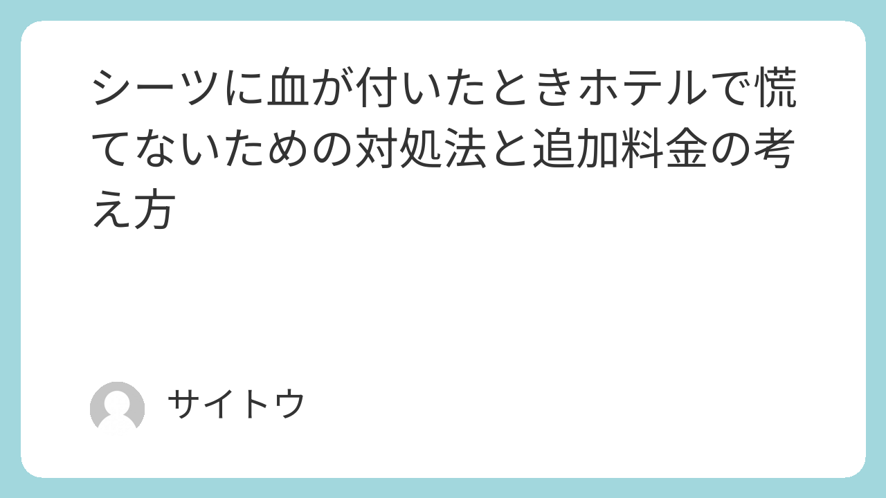 この記事では、シーツに血が付いたときの初動、フロントへの伝え方、料金の考え方、次回の予防策まで、ホテル滞在中にそのまま使える形でわかりやすく整理します。