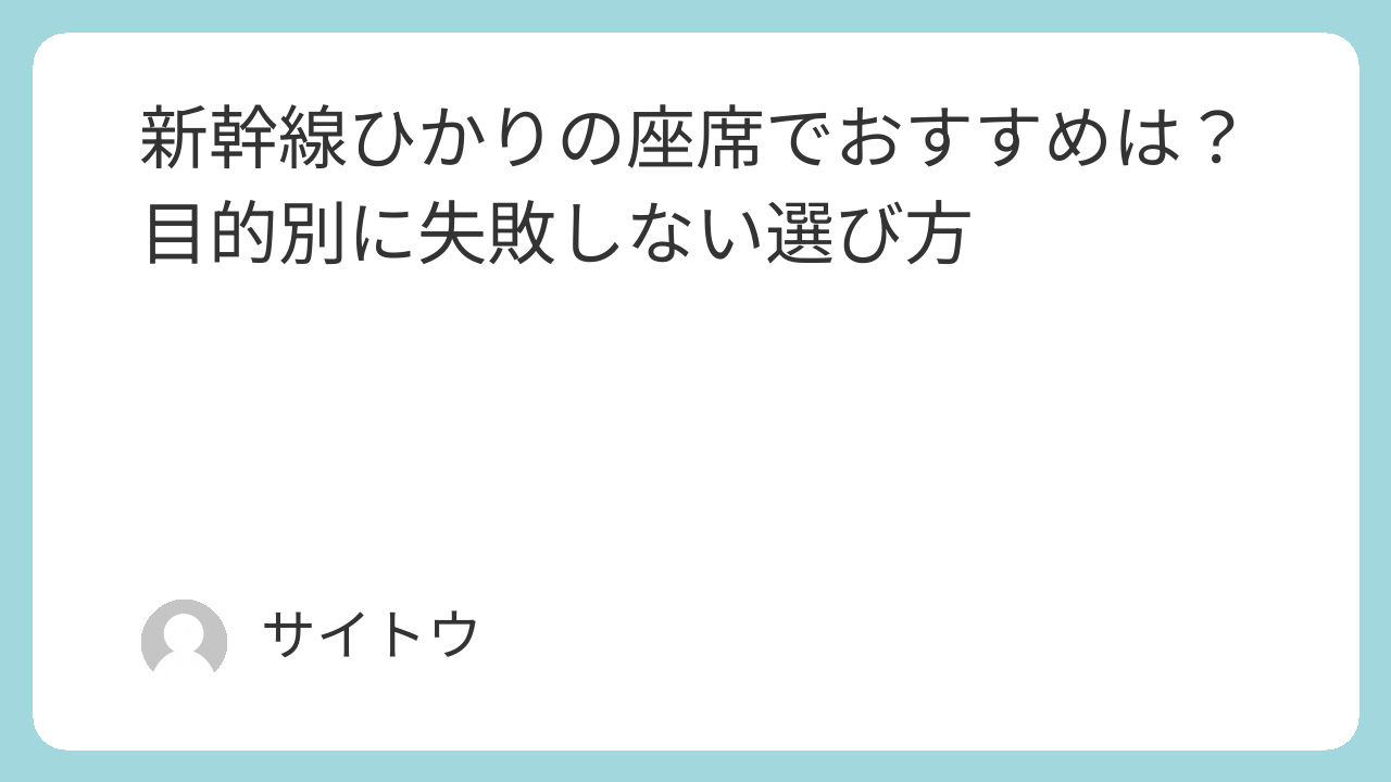 新幹線ひかりの座席選びで大事なのは、人気の席を何となく選ぶことではなく、自分の過ごし方に合う席を選ぶことです。