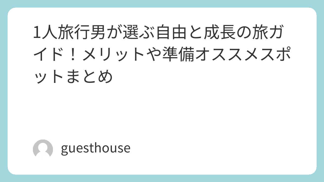 男性ひとり旅は、「なぜ」「どう準備して」「どこに行って」「どう楽しむか」まで、一連の流れと具体的な行動指針が重要です。
