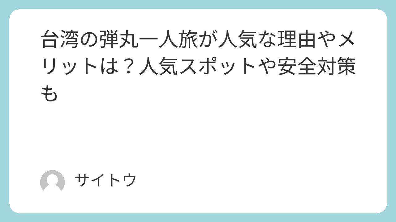 こうした特徴が、台湾の弾丸一人旅を多くの旅行者に支持される理由となっています。