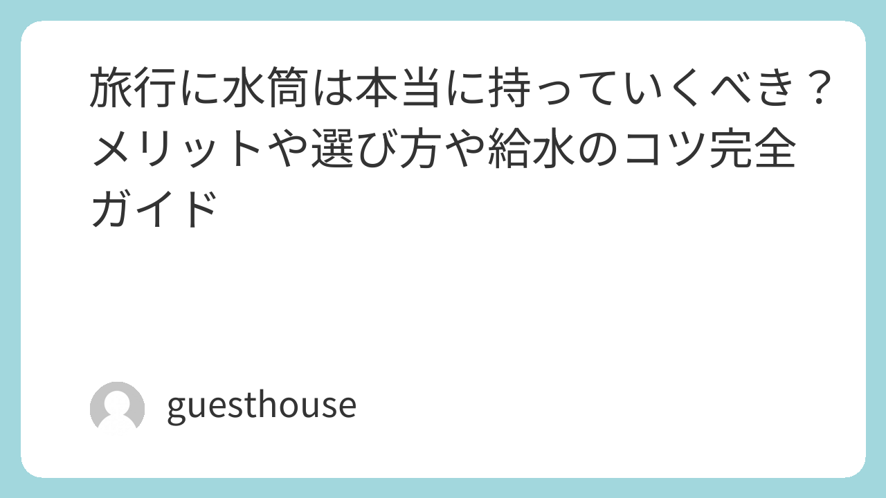 これを読めば「旅行に水筒を持っていくべきか」が明確になります。