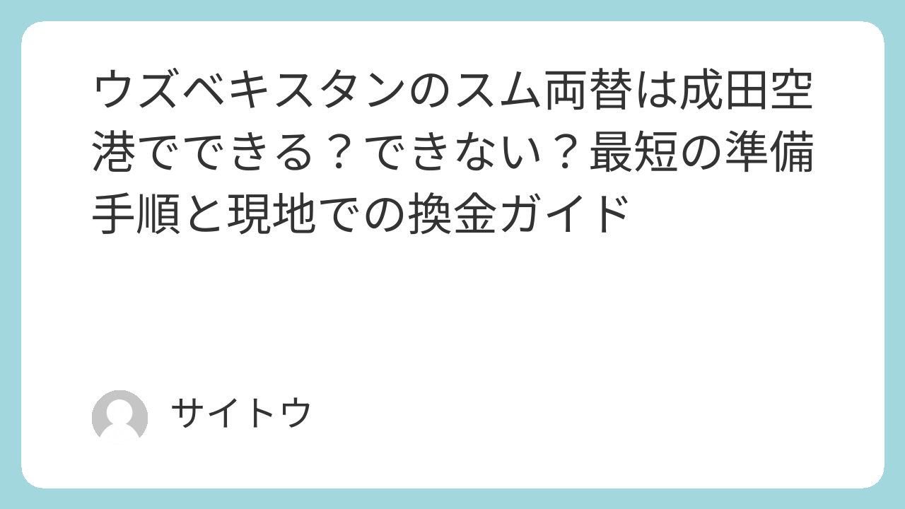 ウズベキスタンのスム両替は成田空港でできる?できない?最短の準備手順と現地での換金ガイド