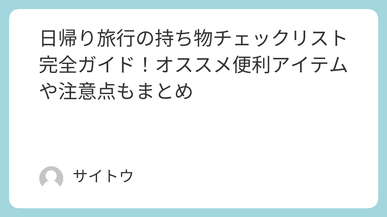 この記事を参考に、自分なりの「持ち物リスト」を作成して、より充実した日帰り旅行を計画してみてください。